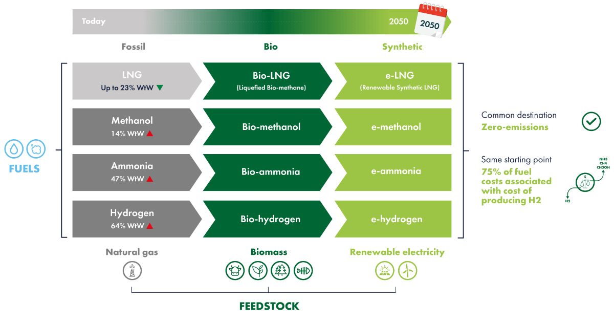 Figure 1: All alternative fuels share a common pathway; shipping must make like-for-like comparisons